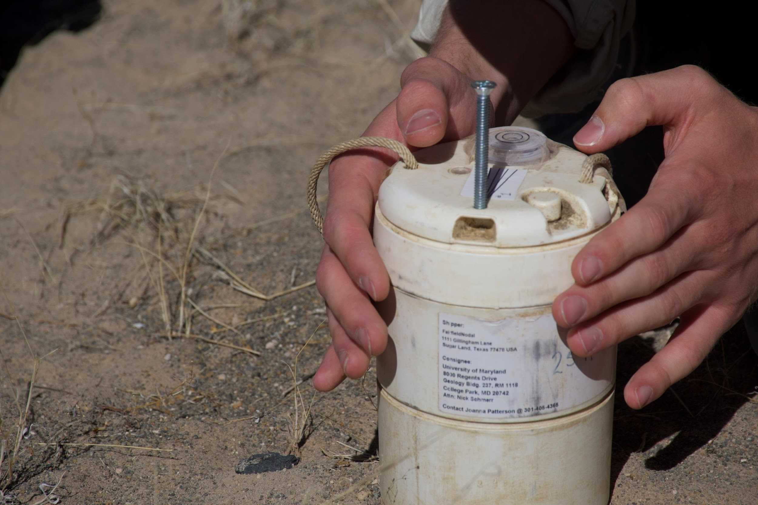The team trades off making strikes with the hammer, resulting in seismic data.