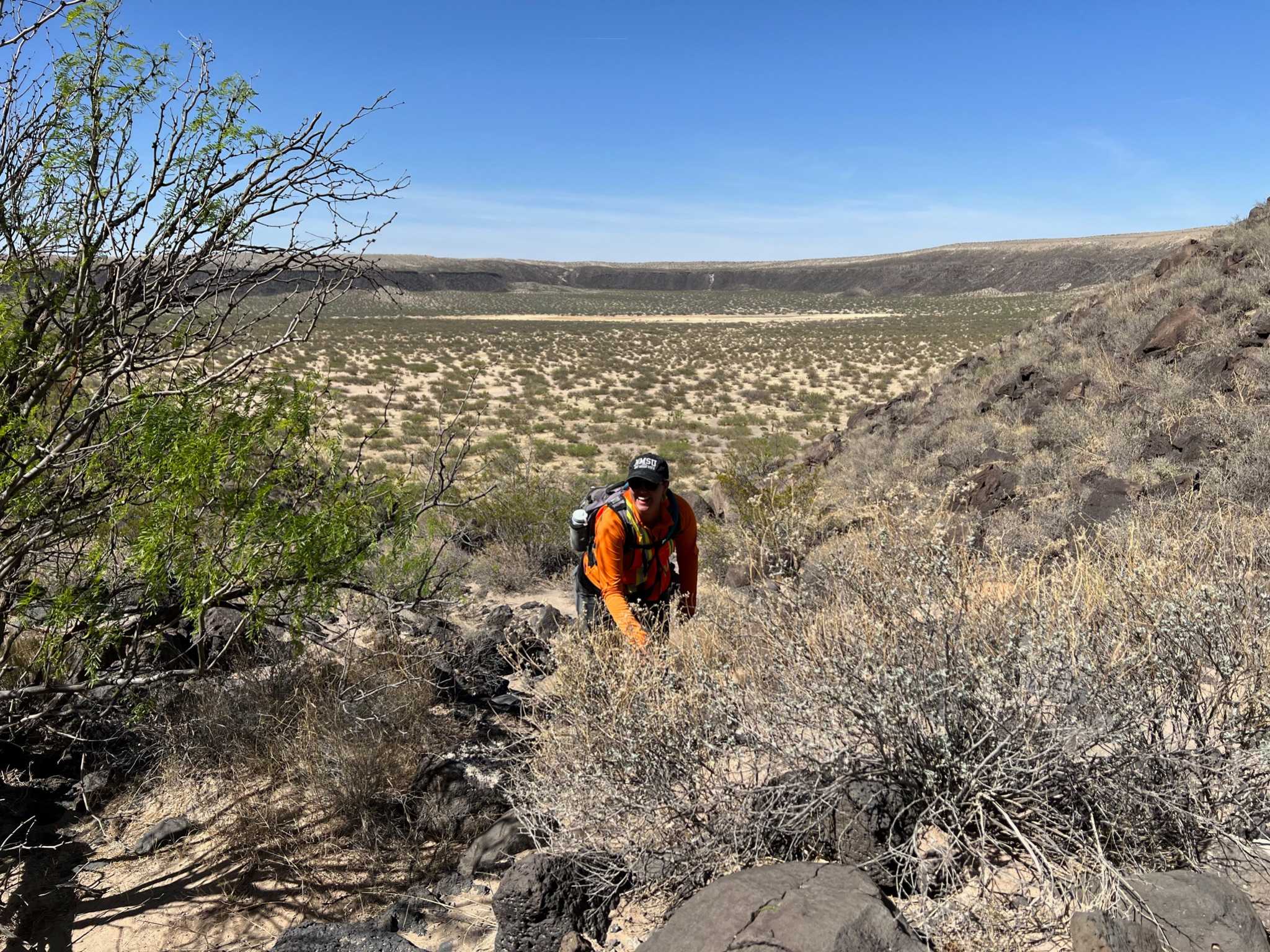 After nearly five hours of data collection and numerous water breaks, Richardson excitedly suggested that the team take the scenic – and trickier – hike up and out of the crater. As the team took breaks throughout the climb, Richardson offered to take pictures, encouraging them to embrace the moment.